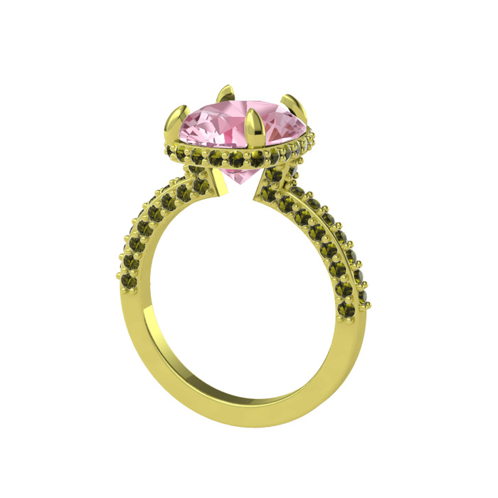 Pembe kuvars ve peridot 18 ayar altın yüzük