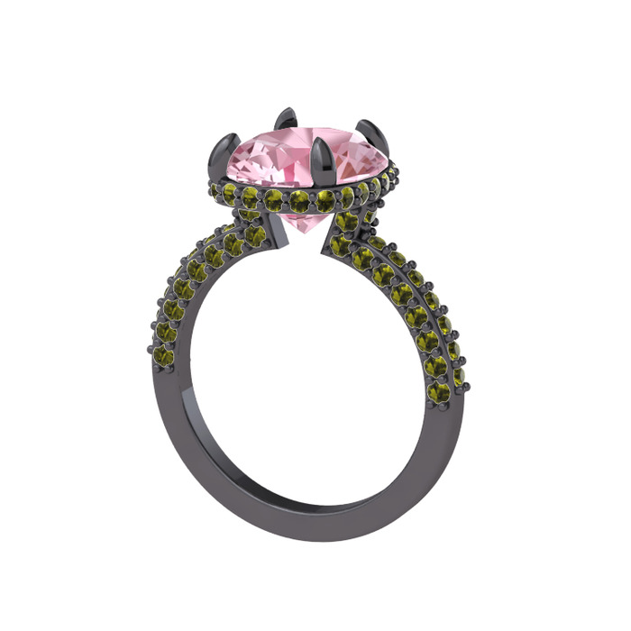 Pembe kuvars ve peridot 925 ayar siyah rodyum kaplama gümüş yüzük