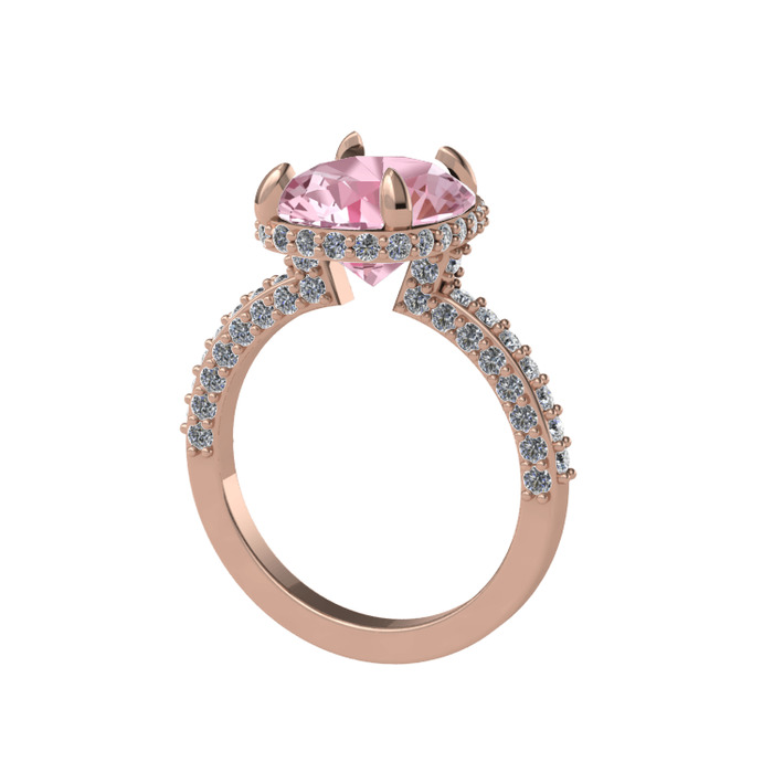 Pembe kuvars ve pırlanta 18 ayar rose altın yüzük (1.05 karat)