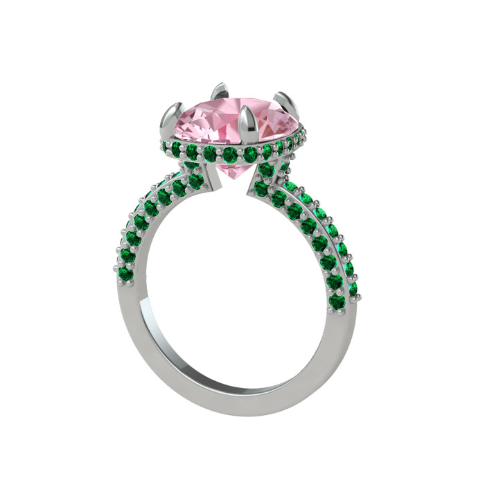 Pembe kuvars ve yeşil kuvars 18 ayar beyaz altın yüzük
