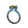 Peridot ve akuamarin 925 ayar siyah rodyum kaplama gümüş yüzük