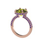 Peridot ve ametist 925 ayar rose altın kaplama gümüş yüzük