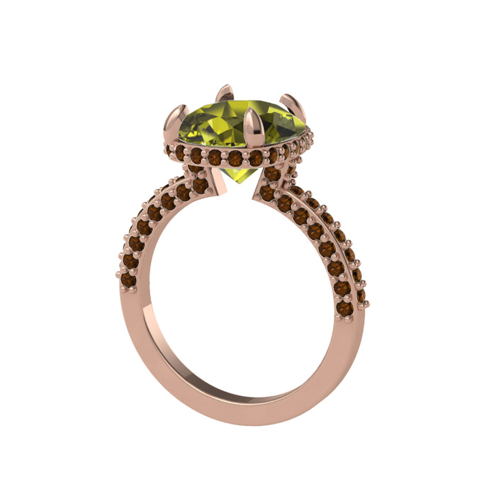 Peridot ve dumanlı kuvars 14 ayar rose altın yüzük