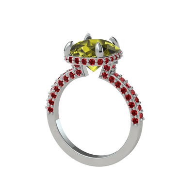 Peridot ve garnet 8 ayar beyaz altın yüzük
