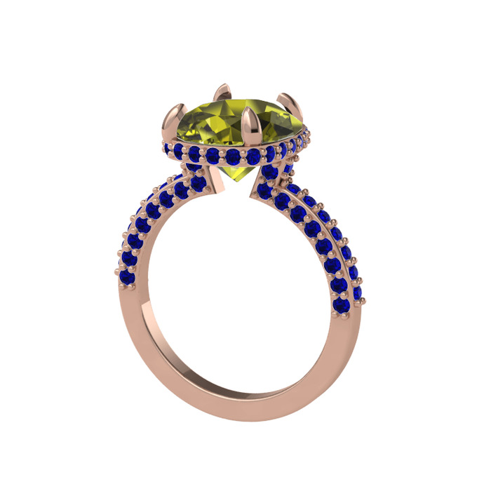 Peridot ve lab safir 14 ayar rose altın yüzük