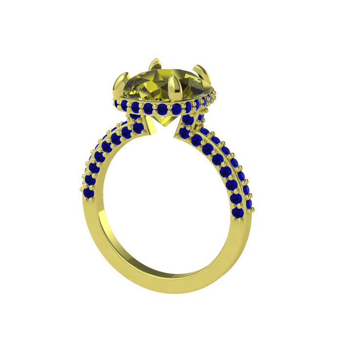 Peridot ve lab safir 925 ayar altın kaplama gümüş yüzük