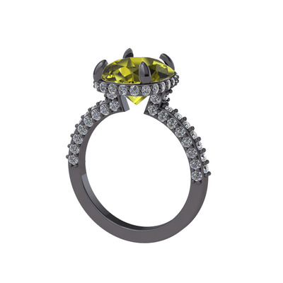 Peridot ve pırlanta 925 ayar siyah rodyum kaplama gümüş yüzük (1.05 karat)