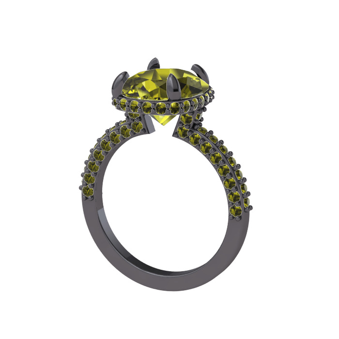 Peridot 925 ayar siyah rodyum kaplama gümüş yüzük