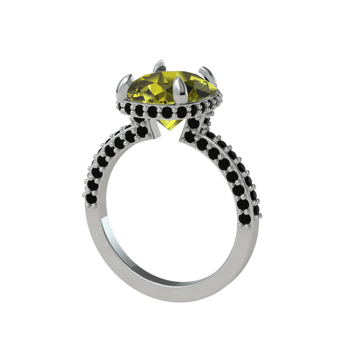 Peridot ve siyah zirkon 18 ayar beyaz altın yüzük
