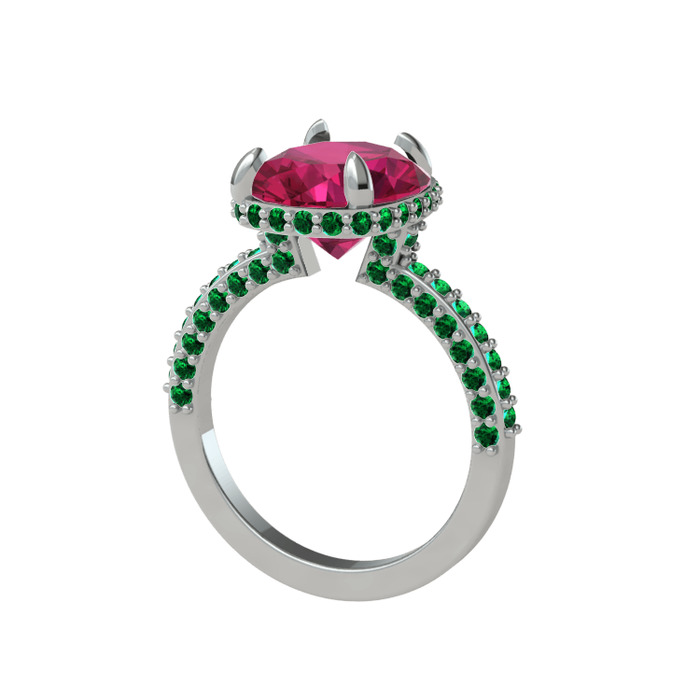 Rodolit garnet ve yeşil kuvars 18 ayar beyaz altın yüzük