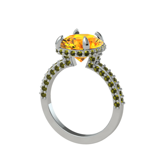 Sitrin ve peridot 14 ayar beyaz altın yüzük