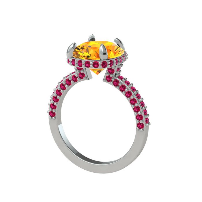 Sitrin ve rodolit garnet 18 ayar beyaz altın yüzük