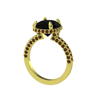 Siyah zirkon ve dumanlı kuvars 8 ayar altın yüzük