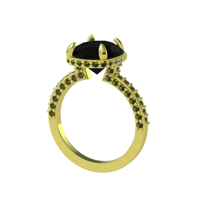 Siyah zirkon ve peridot 925 ayar altın kaplama gümüş yüzük