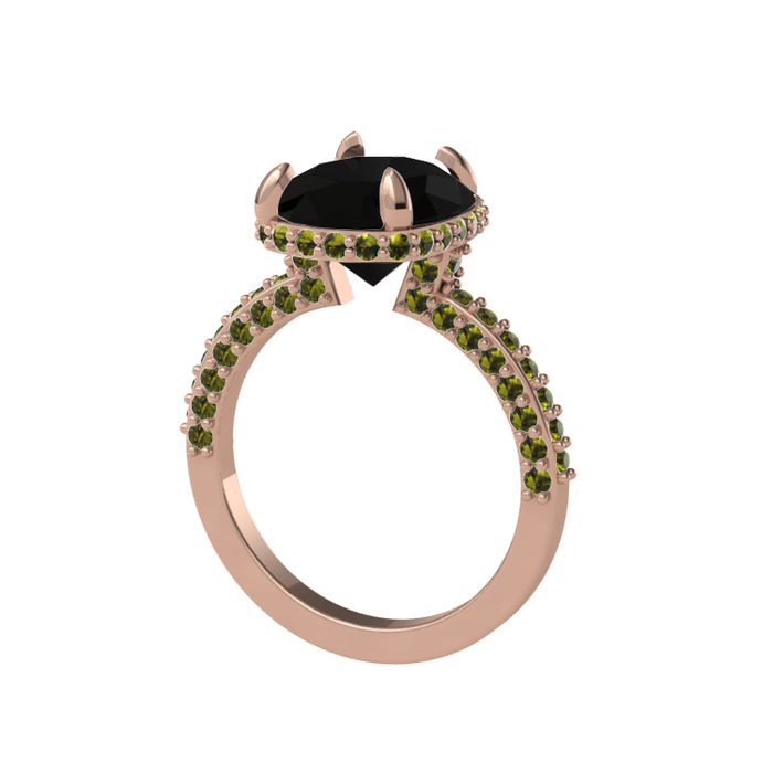 Siyah zirkon ve peridot 925 ayar rose altın kaplama gümüş yüzük