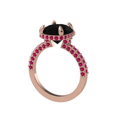 Siyah zirkon ve rodolit garnet 14 ayar rose altın yüzük