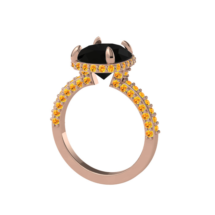 Siyah zirkon ve sitrin 14 ayar rose altın yüzük