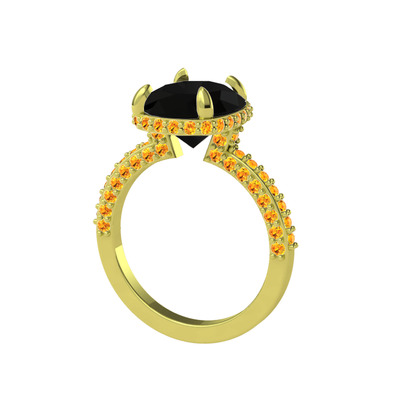 Siyah zirkon ve sitrin 8 ayar altın yüzük
