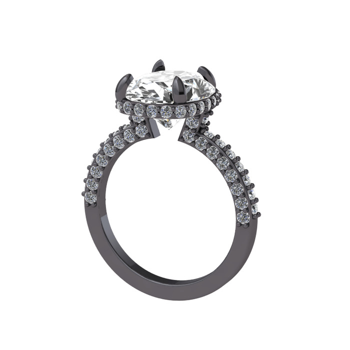Swarovski ve pırlanta 925 ayar siyah rodyum kaplama gümüş yüzük (1.05 karat)