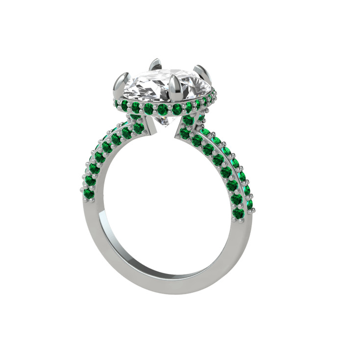 Swarovski ve yeşil kuvars 18 ayar beyaz altın yüzük