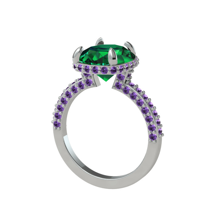 Yeşil kuvars ve ametist 8 ayar beyaz altın yüzük