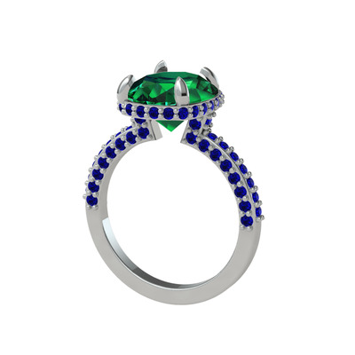 Yeşil kuvars ve lab safir 18 ayar beyaz altın yüzük