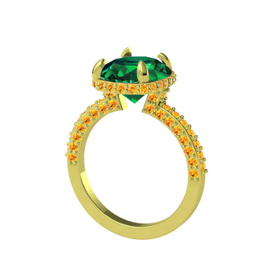 Yeşil kuvars ve sitrin 925 ayar altın kaplama gümüş yüzük