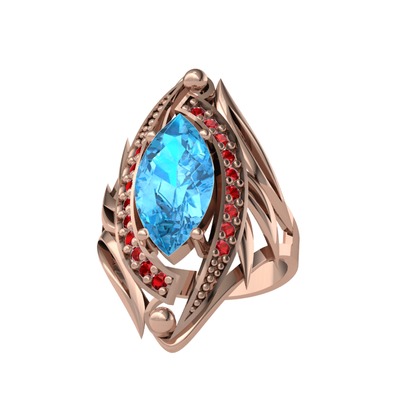 Akuamarin ve garnet 18 ayar rose altın yüzük