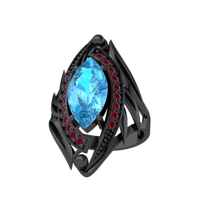 Akuamarin ve kök yakut 925 ayar siyah rodyum kaplama gümüş yüzük