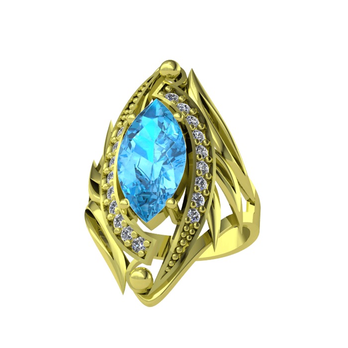 Akuamarin ve pırlanta 925 ayar altın kaplama gümüş yüzük (0.36 karat)