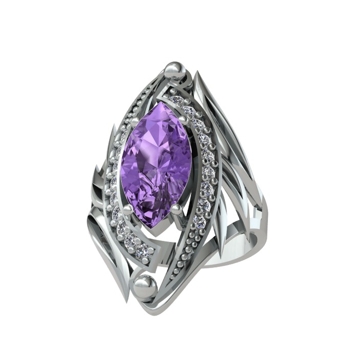 Ametist ve beyaz zirkon 925 ayar gümüş yüzük