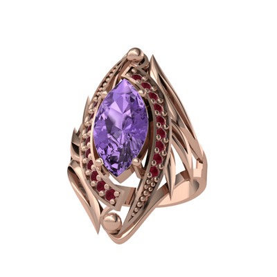 Ametist ve kök yakut 14 ayar rose altın yüzük