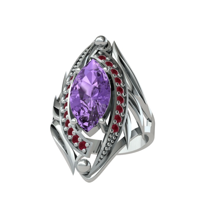 Ametist ve kök yakut 925 ayar gümüş yüzük
