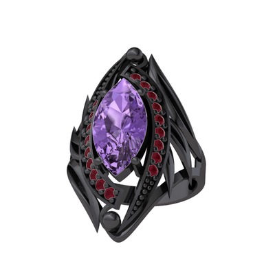 Ametist ve kök yakut 925 ayar siyah rodyum kaplama gümüş yüzük