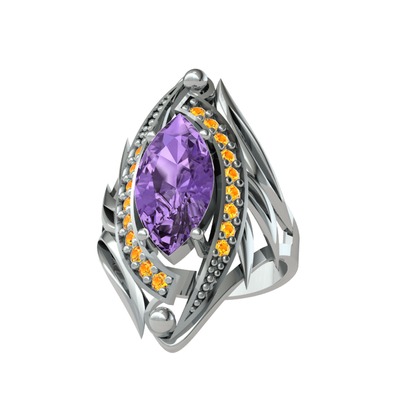 Ametist ve sitrin 14 ayar beyaz altın yüzük