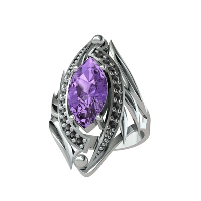 Ametist ve siyah zirkon 8 ayar beyaz altın yüzük
