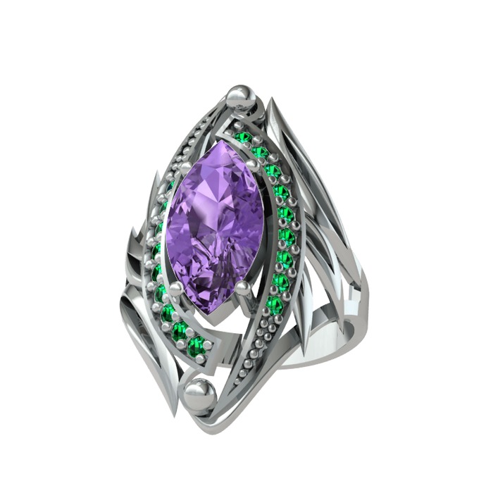 Ametist ve yeşil kuvars 18 ayar beyaz altın yüzük
