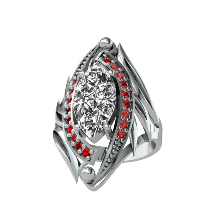 Beyaz zirkon ve garnet 14 ayar beyaz altın yüzük