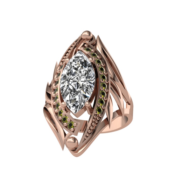 Beyaz zirkon ve peridot 925 ayar rose altın kaplama gümüş yüzük