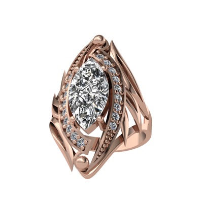 Beyaz zirkon ve swarovski 925 ayar rose altın kaplama gümüş yüzük