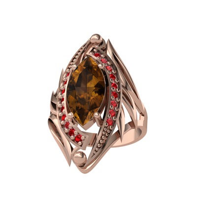 Dumanlı kuvars ve garnet 8 ayar rose altın yüzük