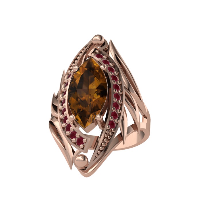 Dumanlı kuvars ve kök yakut 18 ayar rose altın yüzük