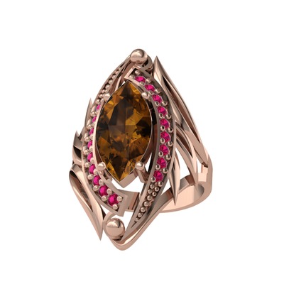 Dumanlı kuvars ve rodolit garnet 925 ayar rose altın kaplama gümüş yüzük