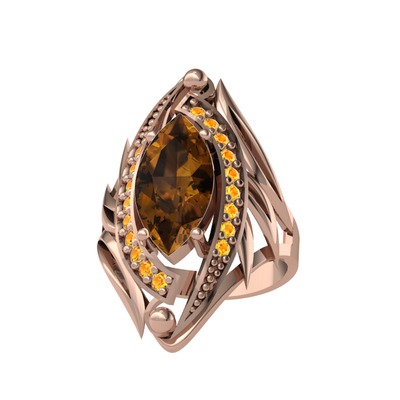 Dumanlı kuvars ve sitrin 8 ayar rose altın yüzük