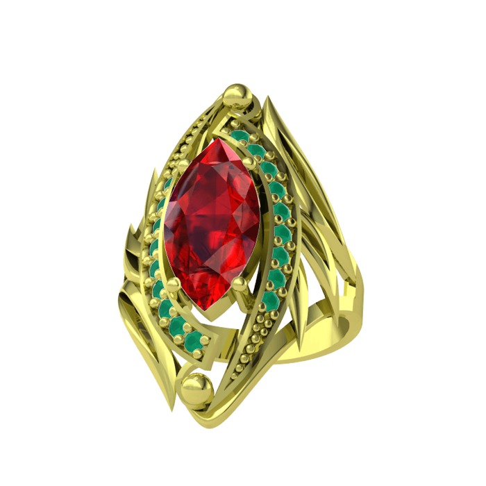Garnet ve kök zümrüt 925 ayar altın kaplama gümüş yüzük