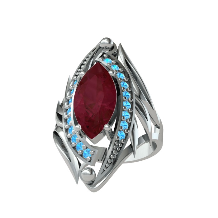 Kök yakut ve akuamarin 14 ayar beyaz altın yüzük