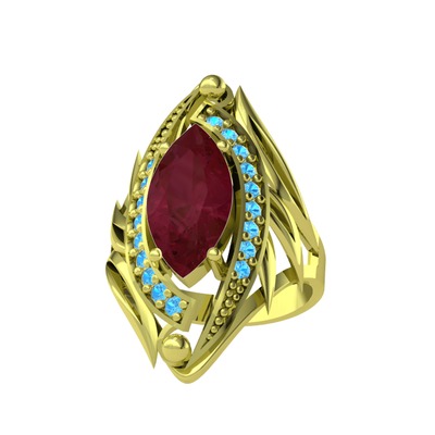 Kök yakut ve akuamarin 8 ayar altın yüzük