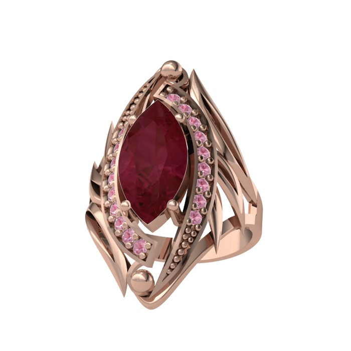 Kök yakut ve pembe kuvars 18 ayar rose altın yüzük
