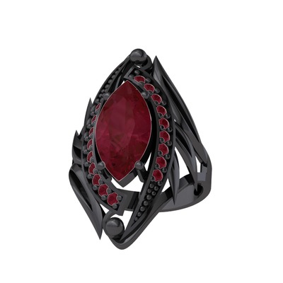 Kök yakut 925 ayar siyah rodyum kaplama gümüş yüzük