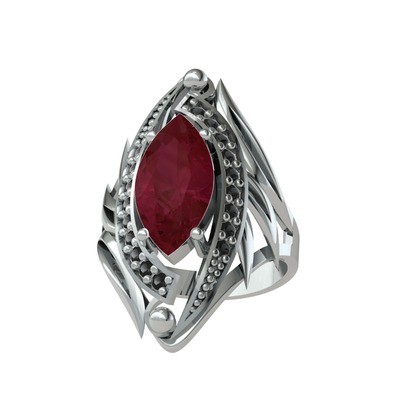 Kök yakut ve siyah zirkon 925 ayar gümüş yüzük